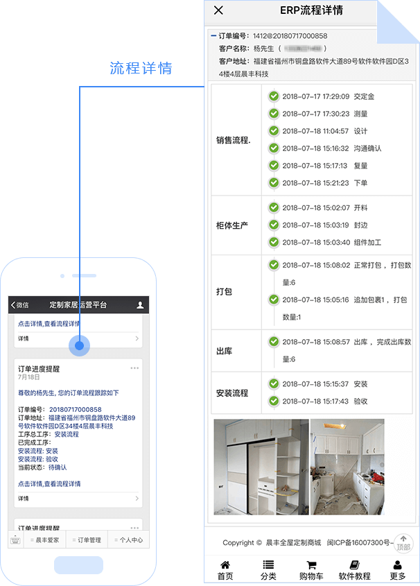 针对订单设置的提醒功能,有效让客户、门店跟踪订单的最新进展,以及售后服务